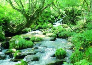 奥大山の自然を象徴するものの1つに「木谷沢渓流」があります。工場から車で5分ほどの場所に奥大山スキー場があり、駐車場脇の小道から進むとブナの木々と自然が生んだ沢が広がっています。