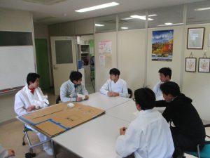 訓練後は反省点や改善策について話し合いました。今回は開始時間を指定せずに抜き打ちで始めた為、各々が考えて行動する実践的な訓練となりました。
