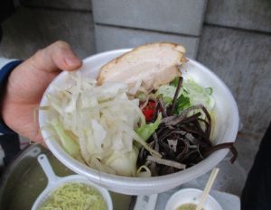⇓完成したものがこちら!!かえしタレに手作り豚骨スープを入れ各自トッピングをしました!